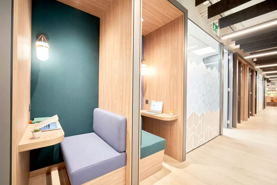 El sencillo open-space se complica hacia oficinas personalizadas a muchos niveles, con layout propio, salas de reuniones y phone booths dentro de su espacio privado. Entrada exclusiva, personalización de marca y otros muchos más son los aspectos en los que las peticiones de estas compañías han crecido.