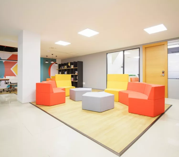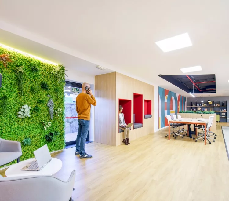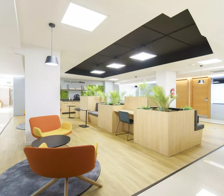 Un coworking corporativo ideal para trabajar si buscas tranquilidad y servicios premium. ¿Lo mejor? Sus breakout areas y los espacios verdes.